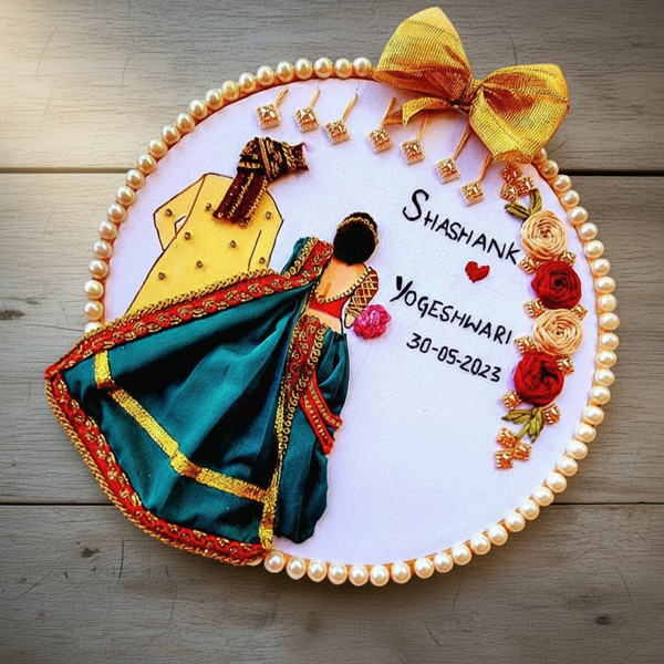 3D Fabric & Thread Custom Couple Engagement/Wedding Art Hoop