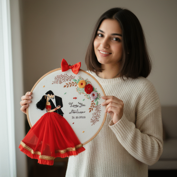 Forever Love Custom Embroidered Portrait Hoop – Personalized Couple Art
