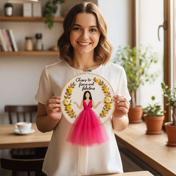 Celebrate the glamour, strength, and fabulousness of the modern woman with this extraordinary, dimensional embroidery hoop art. More than just decor, this piece is an affirmation and a show-stopping tribute to every fierce and fabulous woman in your life.