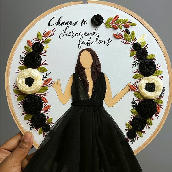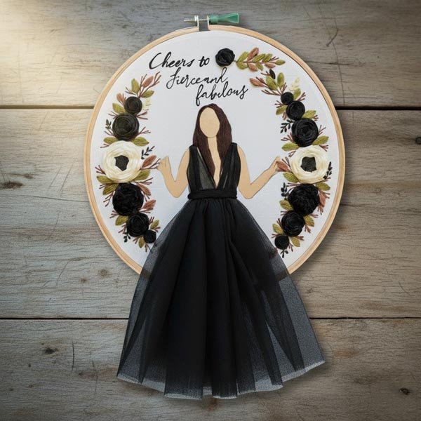 “Cheers to Fierce and Fabulous” Dimensional Embroidery Art