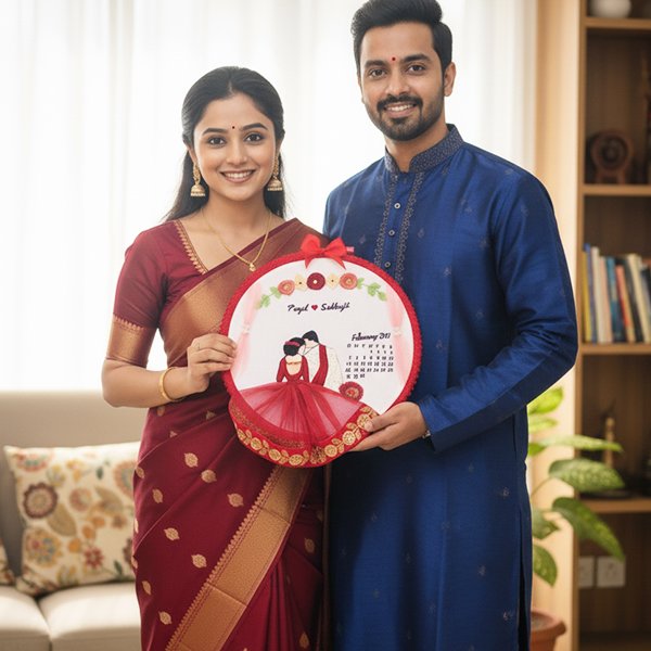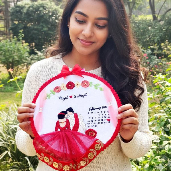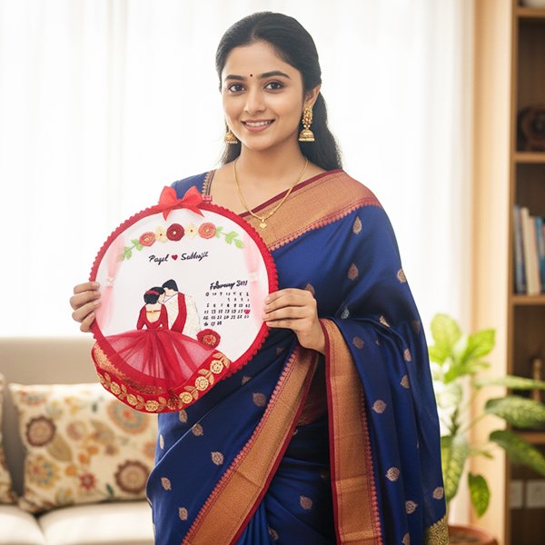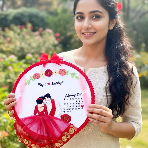 Fully Customizable: Personalize with the couple’s Names (e.g., Payel & Subhajit) and your Significant Date highlighted on the embroidered calendar (e.g., February 2017).