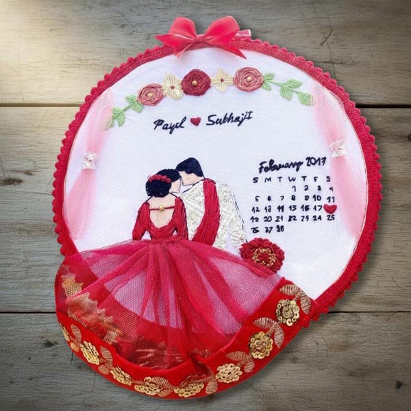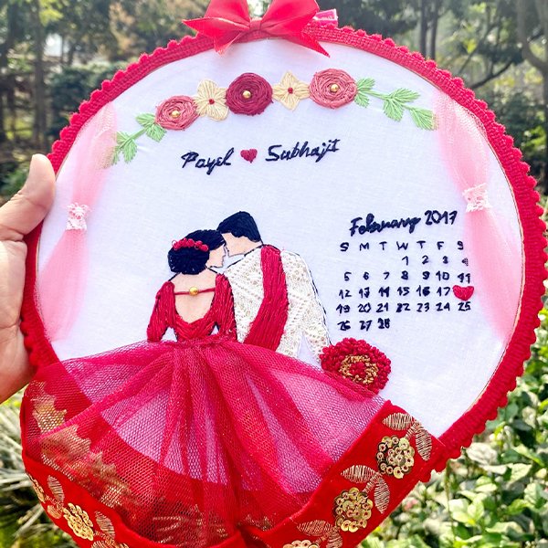 Custom Hand Embroidered Couple Hoop with Wedding/Anniversary Calendar – The ‘Forever Yours’ Keepsake